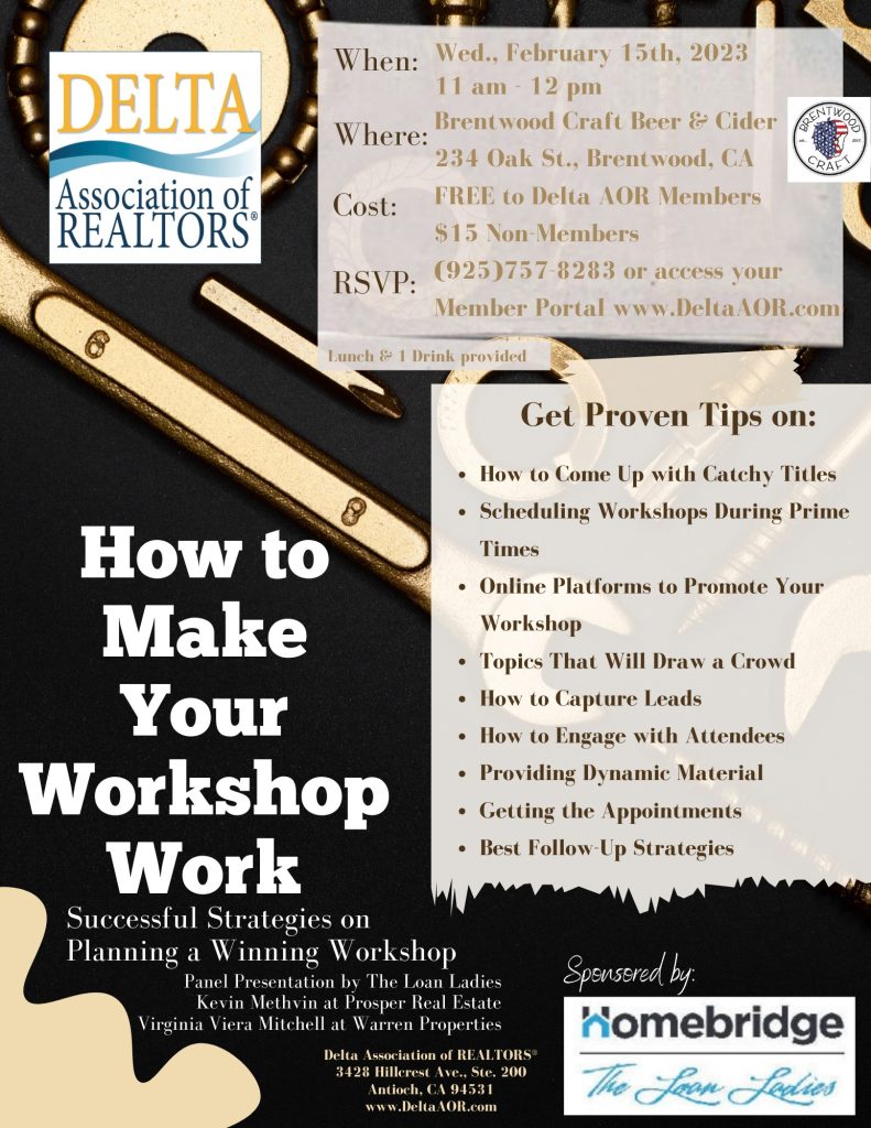 CLASS: “How to Make Your Workshop Work” Panel on Successful Strategies for Real Estate Workshops