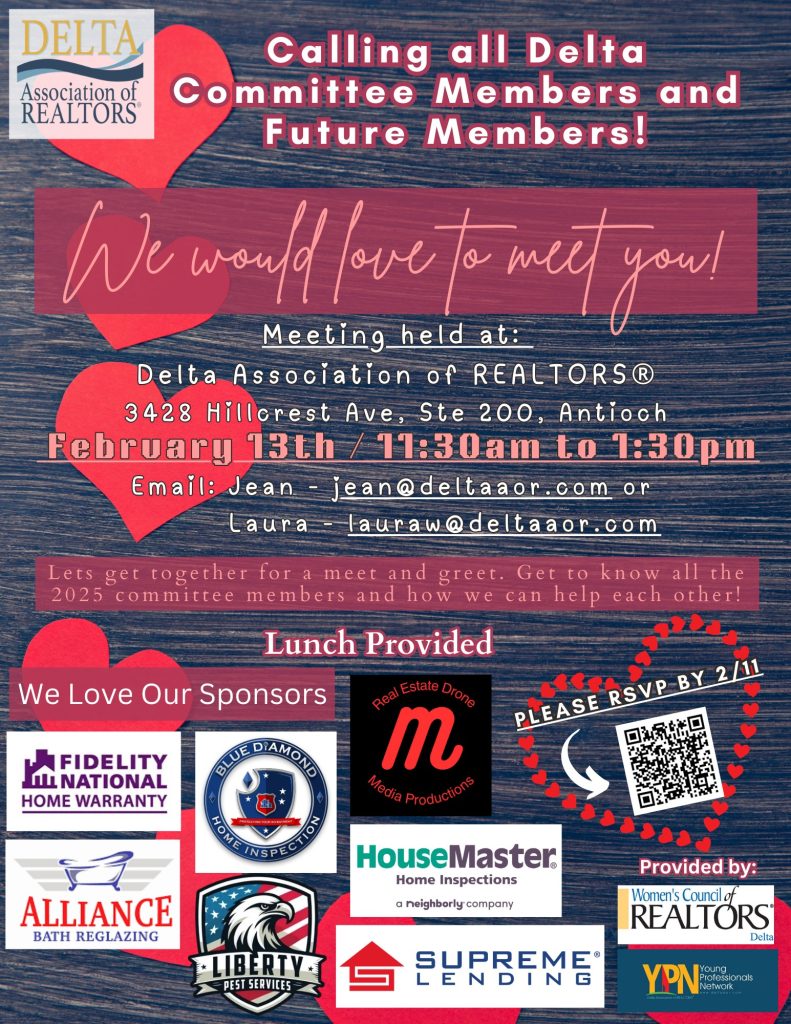 YPN Delta hosts the Annual “Meet Your Delta Committees” at the Delta Association of REALTORS Conference Center. You’ll meet and network with members on the numerous committees within Delta Association and our affiliate organizations serving Delta and the East Bay, such as Women’s Council of REALTORS, NHORA, and more.