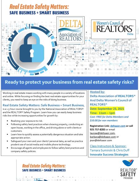 This 1.5 hr course brought to you by the National Association of REALTORS and the REALTORS Safety Program to teach you how to: